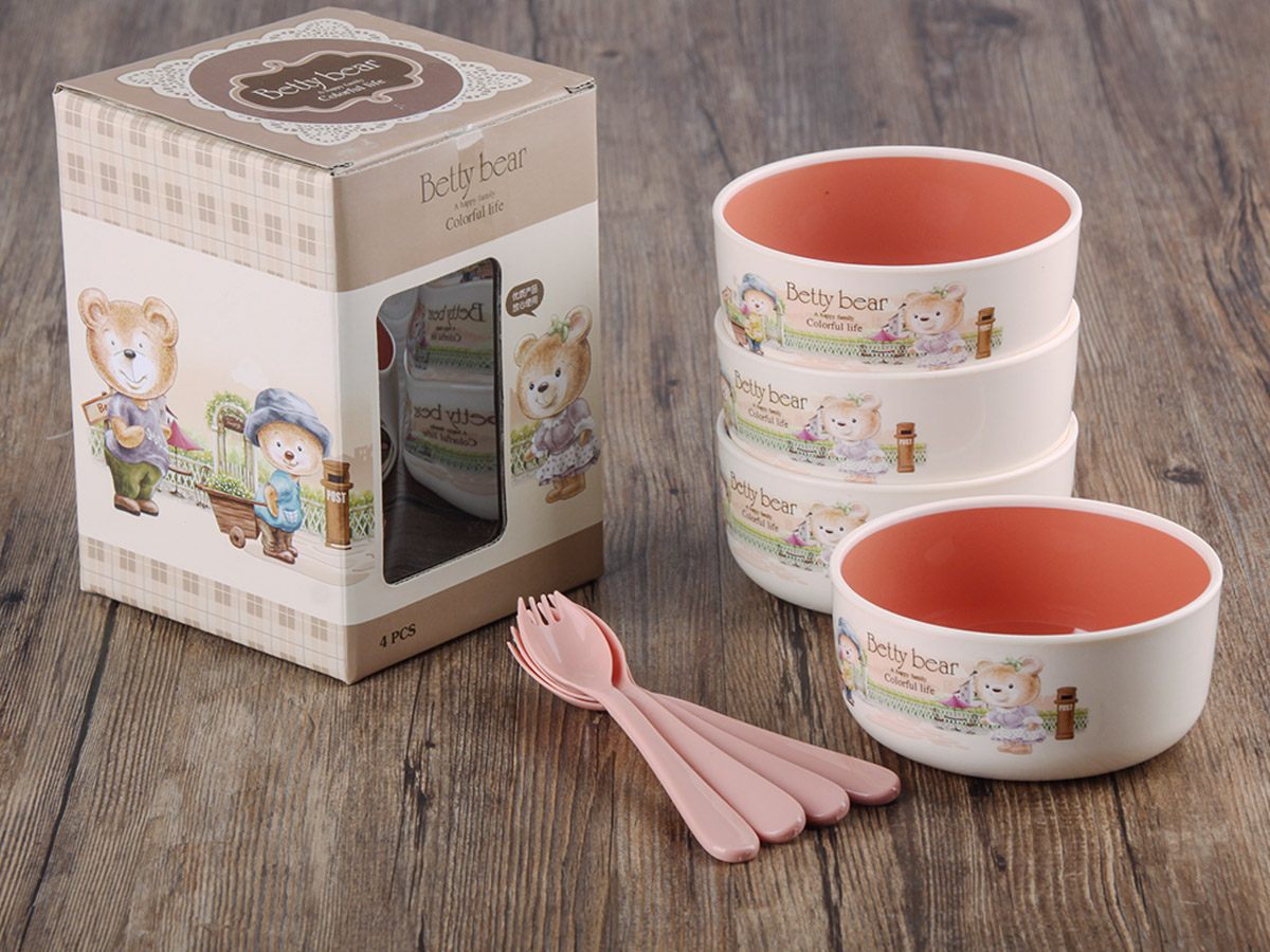 得力熊小號(hào)韓式雙色餐碗(4PCS)