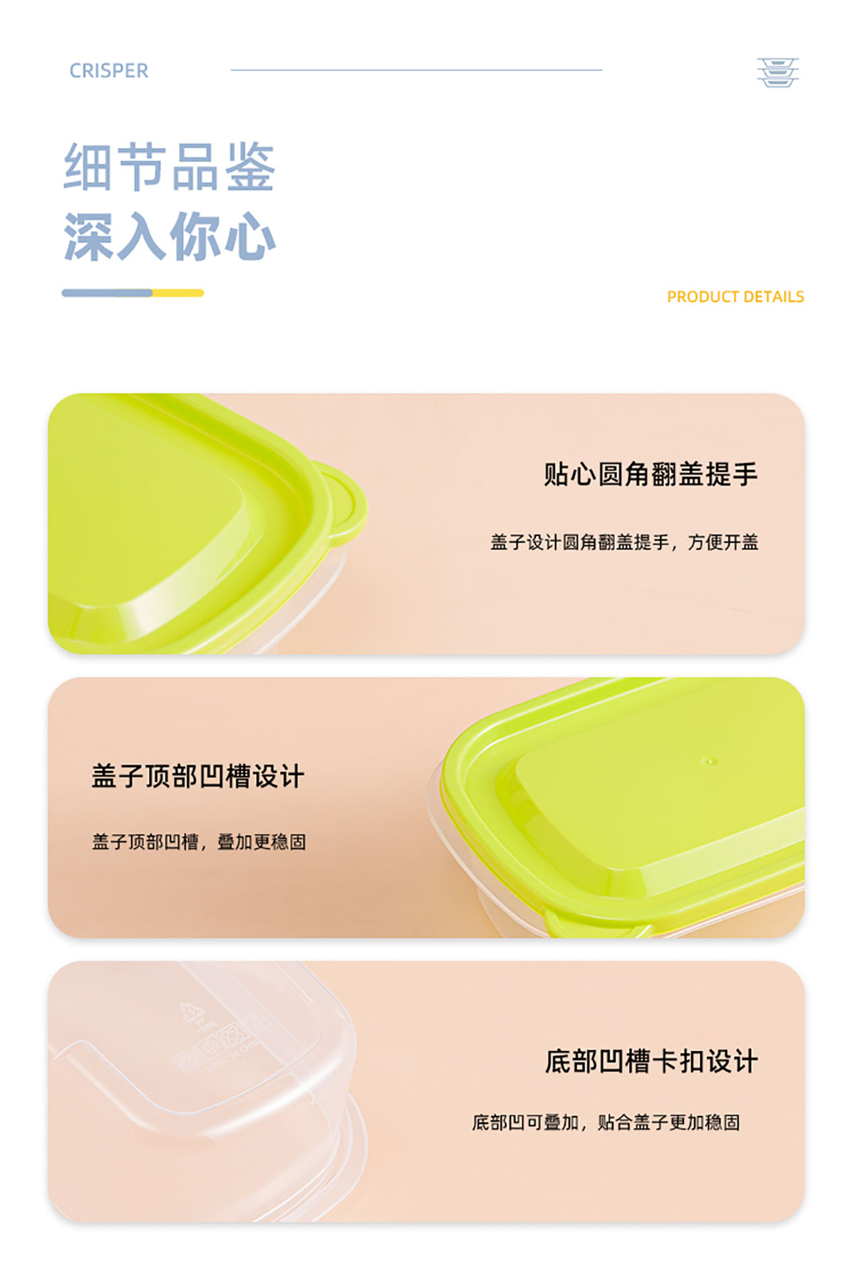 長方形750ML保鮮盒(3個裝)