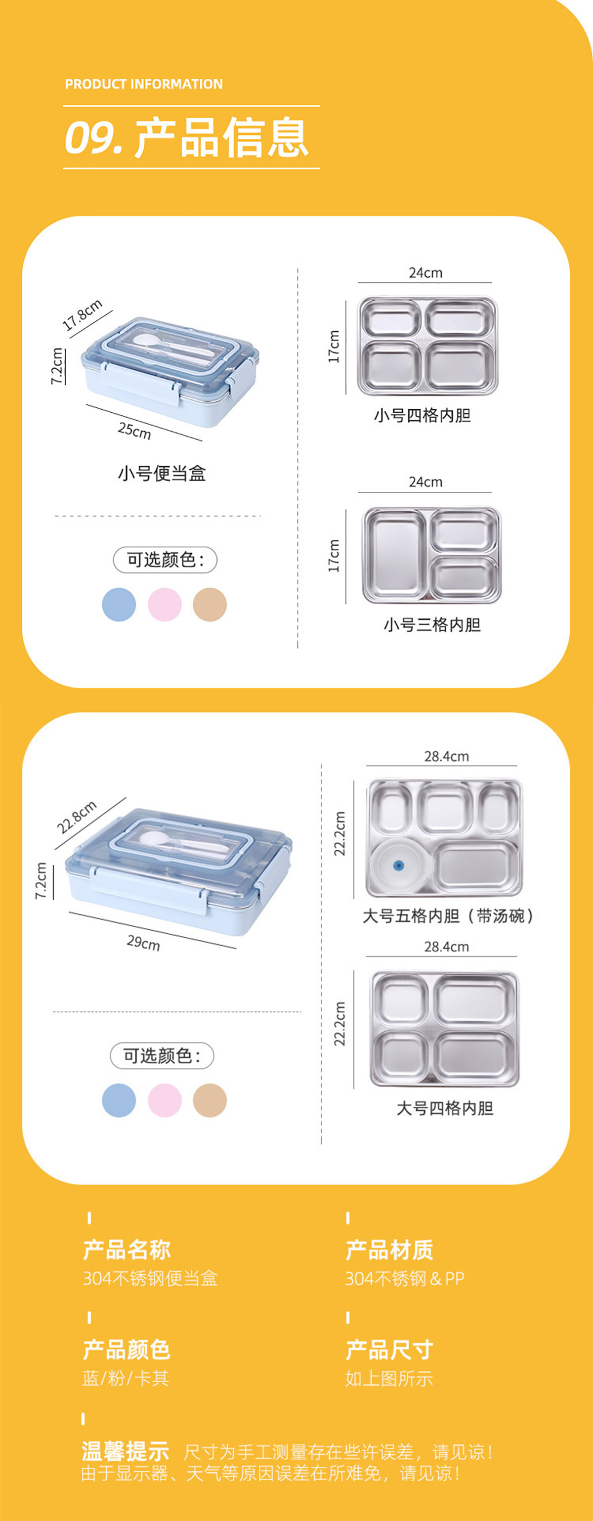 Size: JQ-2696(小號(hào)/三格):250*178*72mm