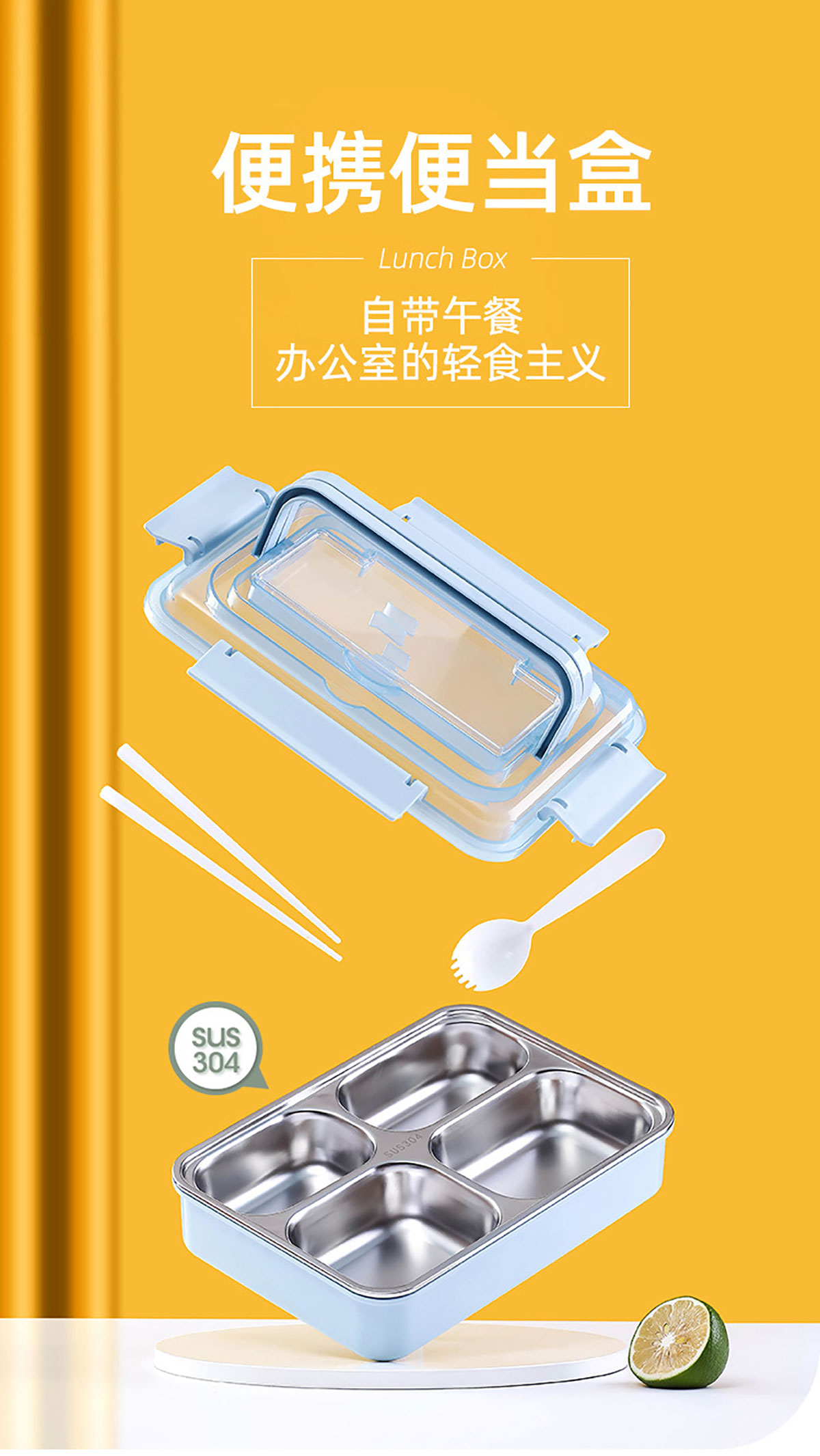 便捷式不銹鋼飯盒 小號(hào)(三格/四格)大號(hào)(四格/五格)