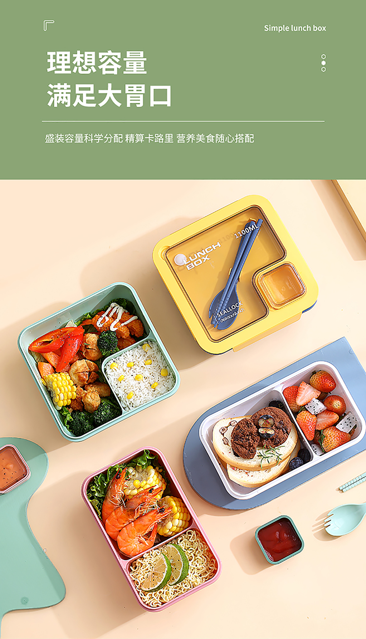 星樂(lè)輕食便當(dāng)盒長(zhǎng)方形850ml/正方形1100ml