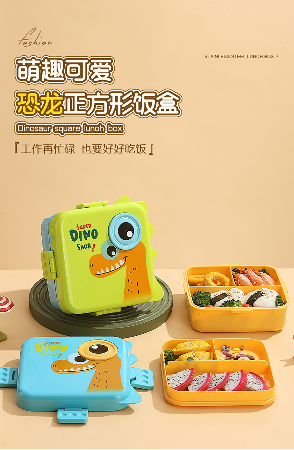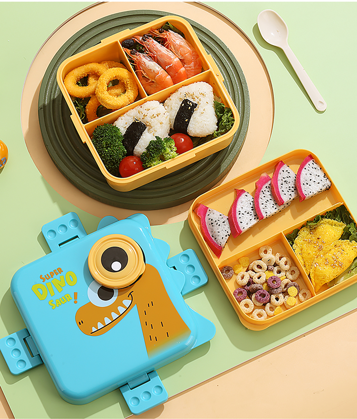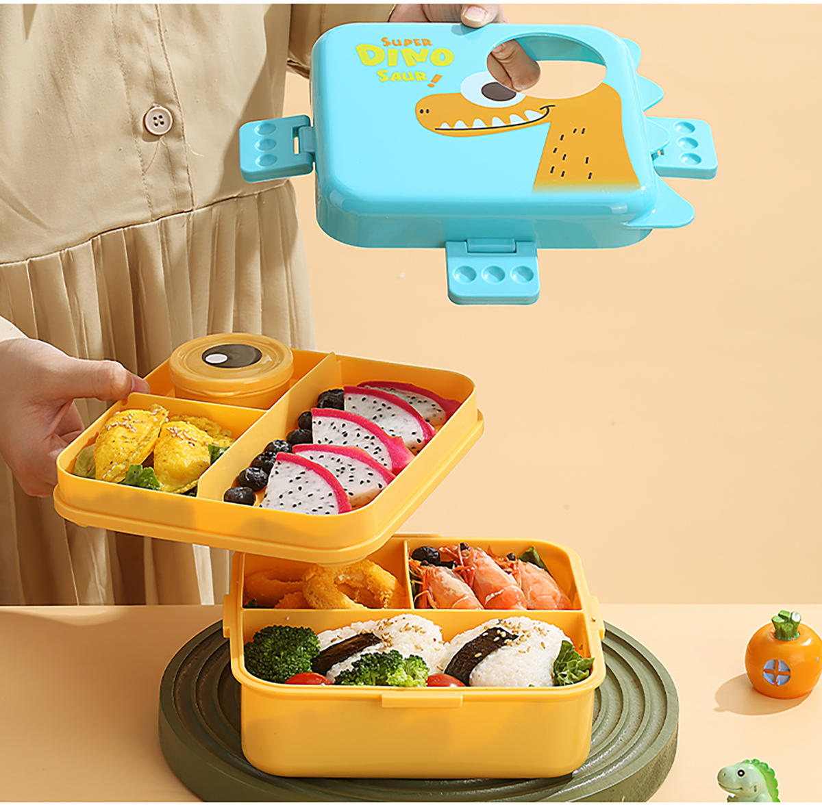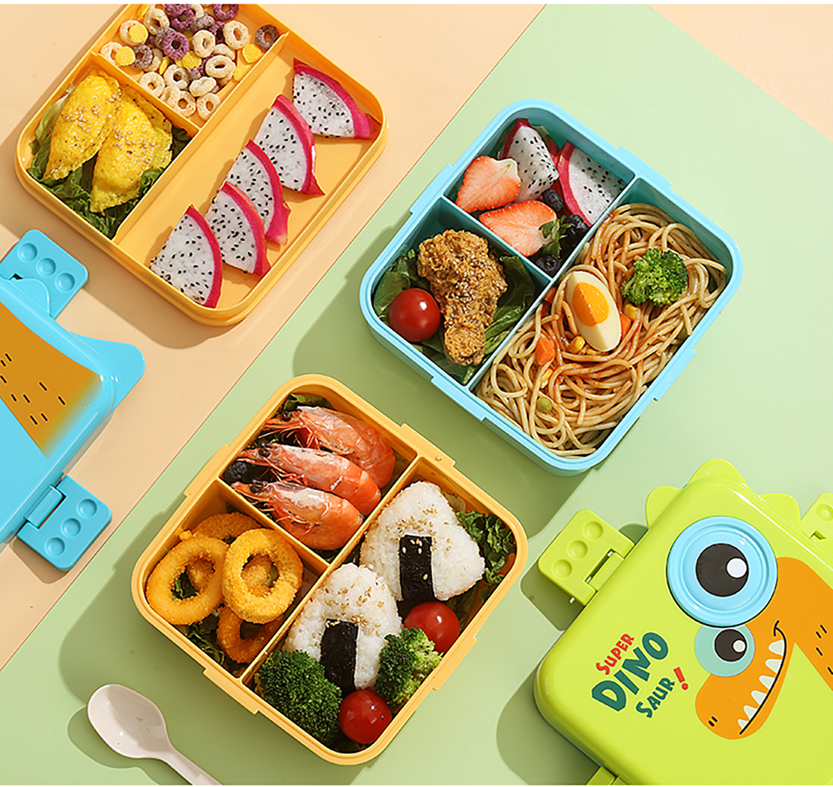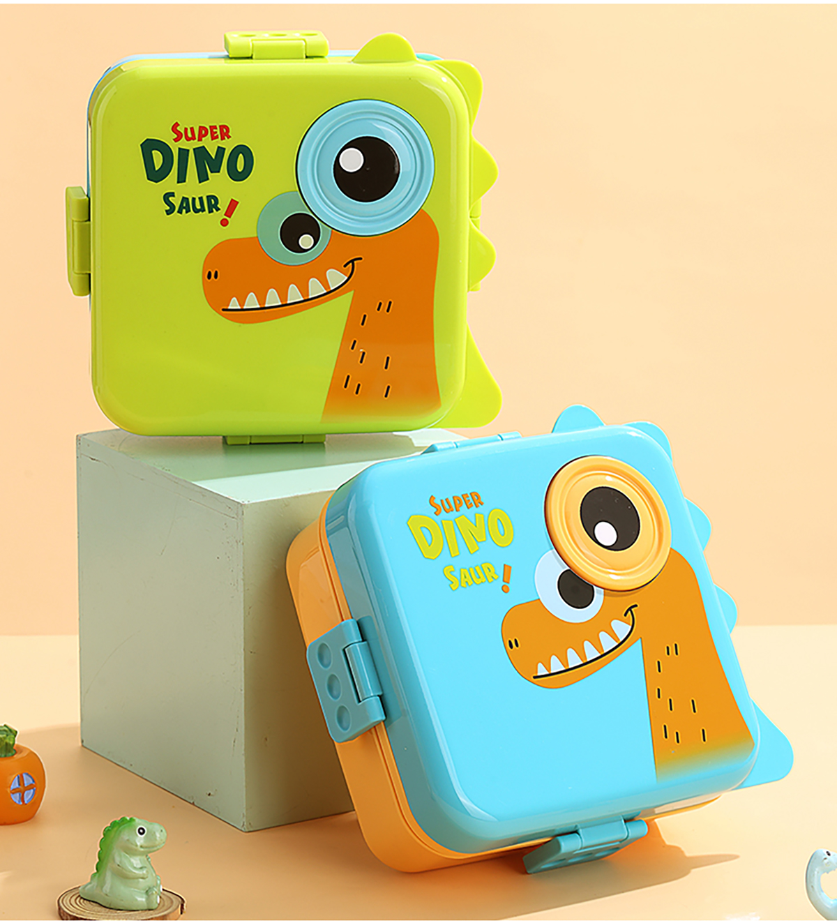 恐龍正方形飯盒(塑料)1590ml+70ml