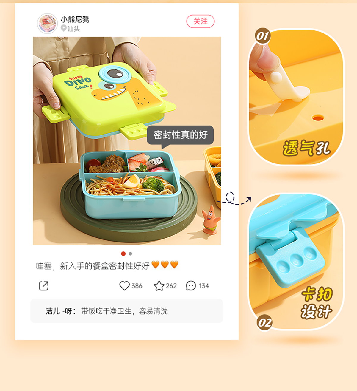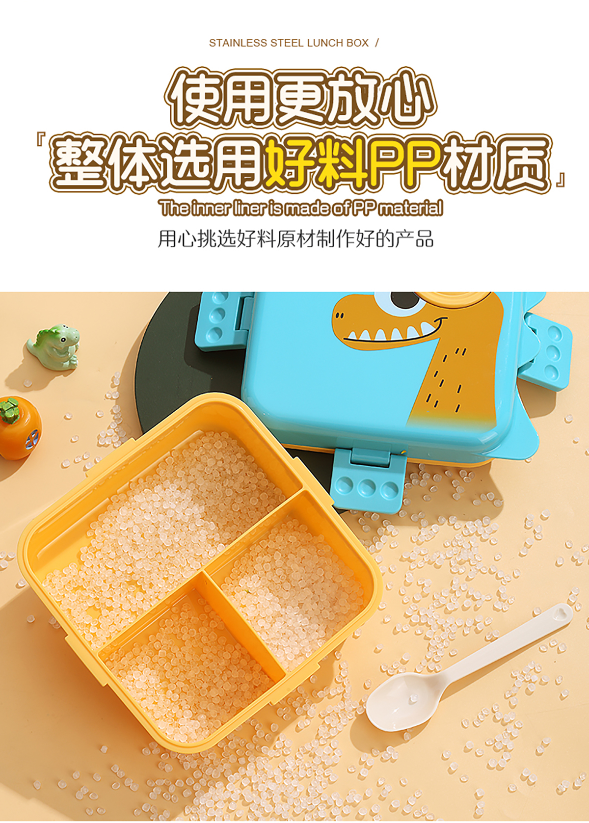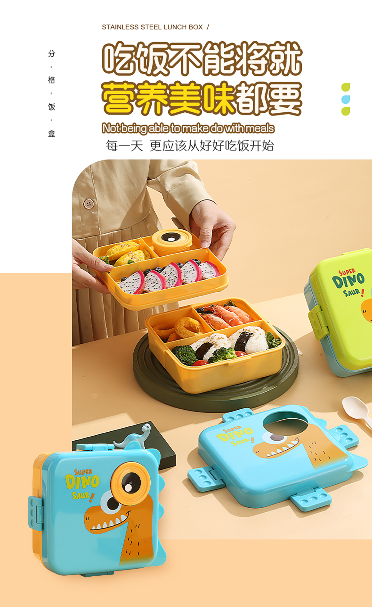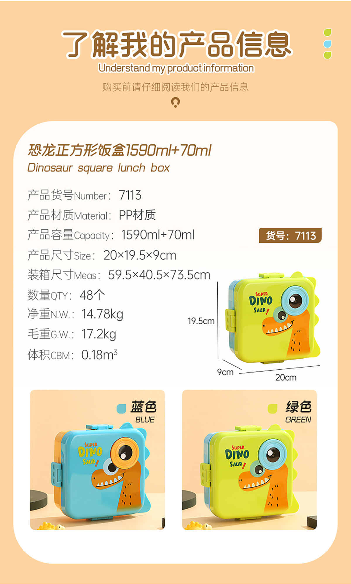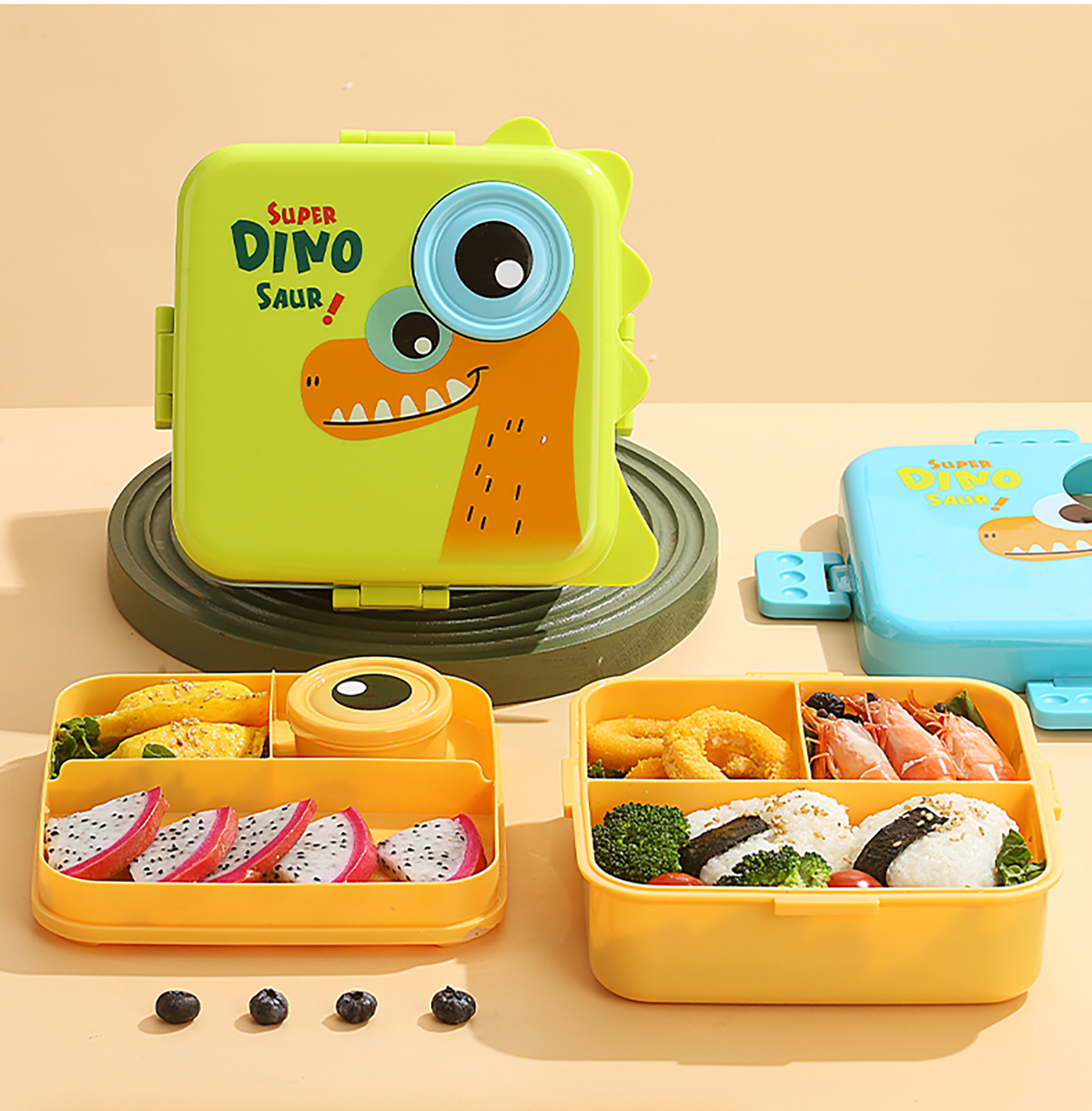 恐龍正方形飯盒(塑料)1590ml+70ml