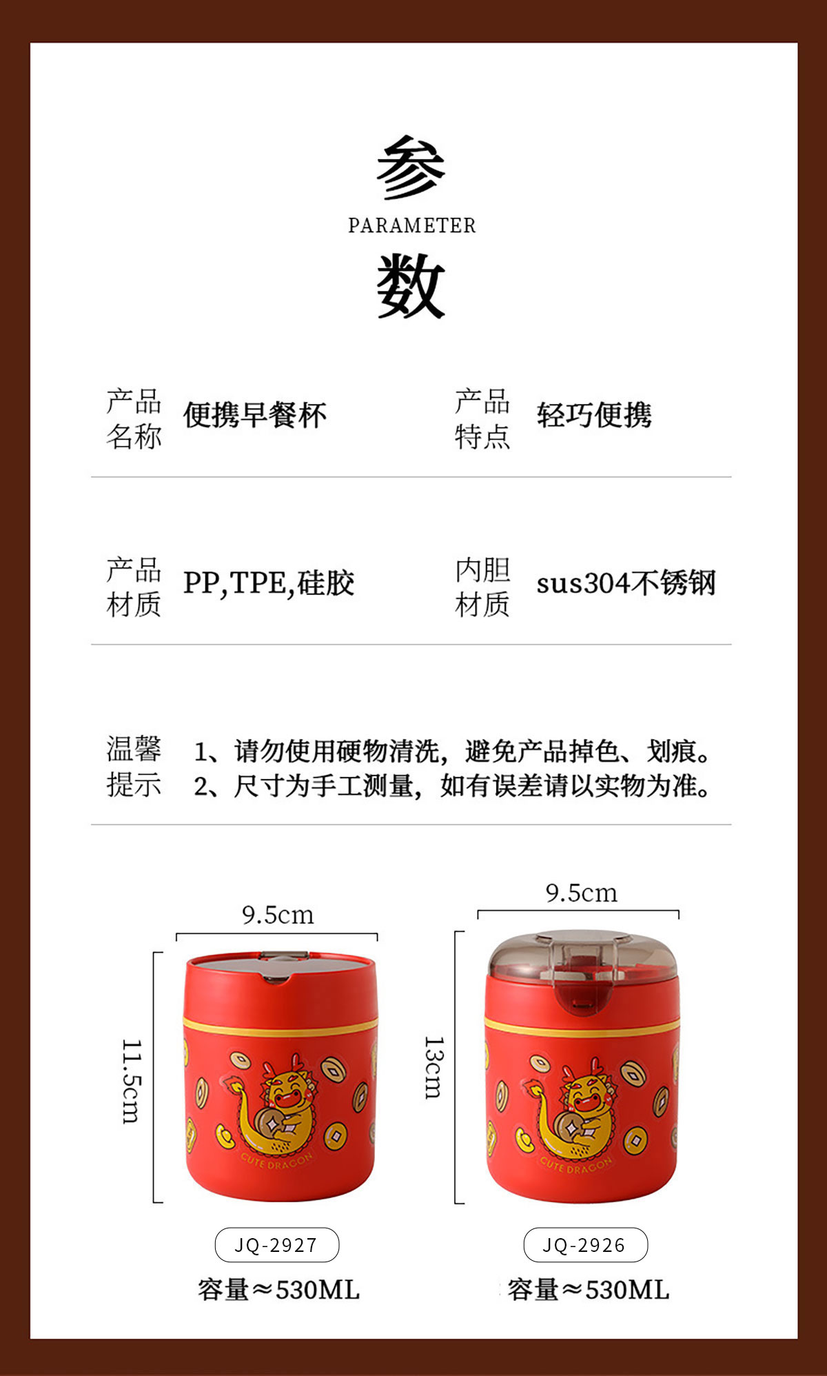 Size: JQ-2926(高蓋):95*130mm/530ml