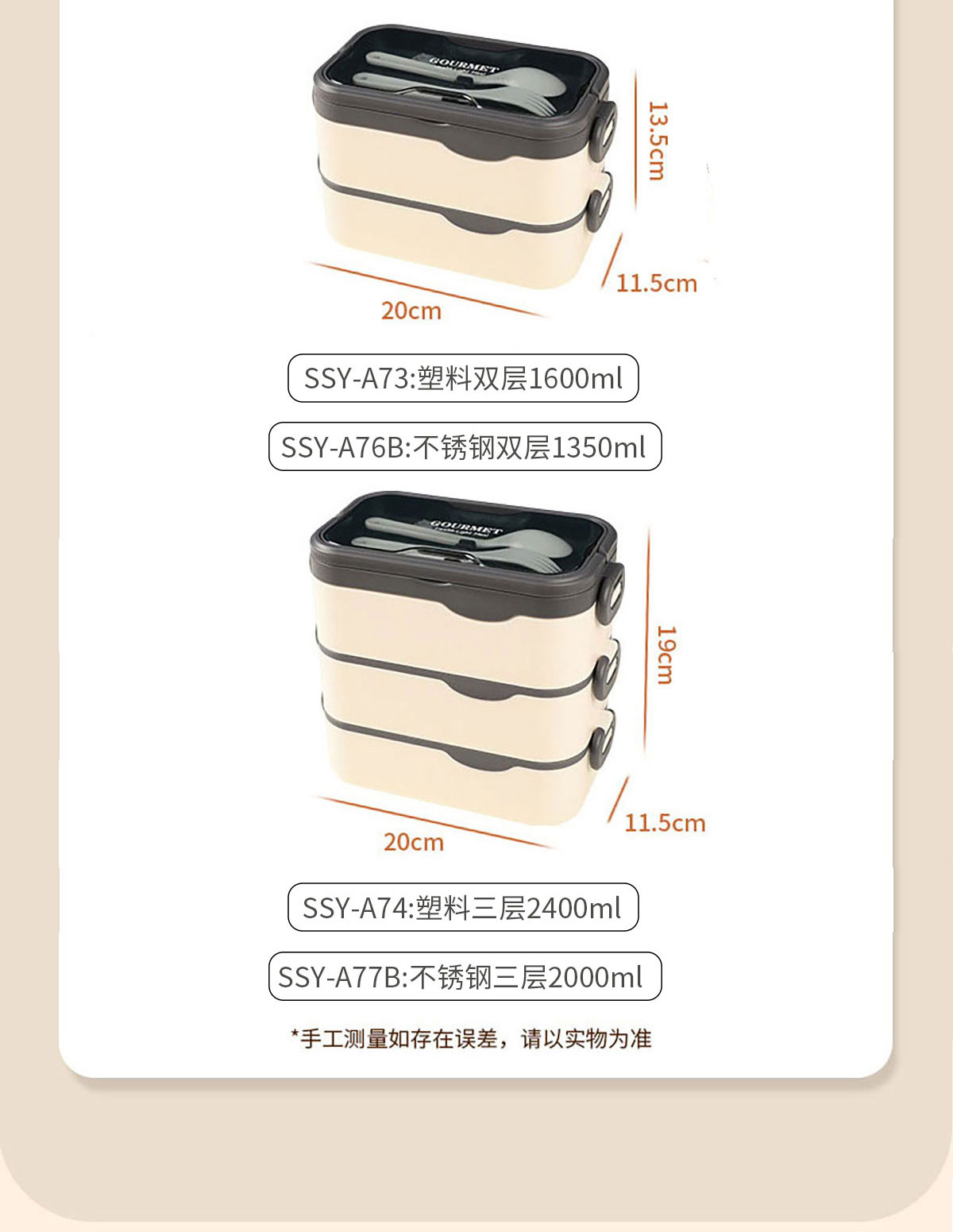 SSY-A77B(不銹鋼三層):200*115*190mm/2000ml