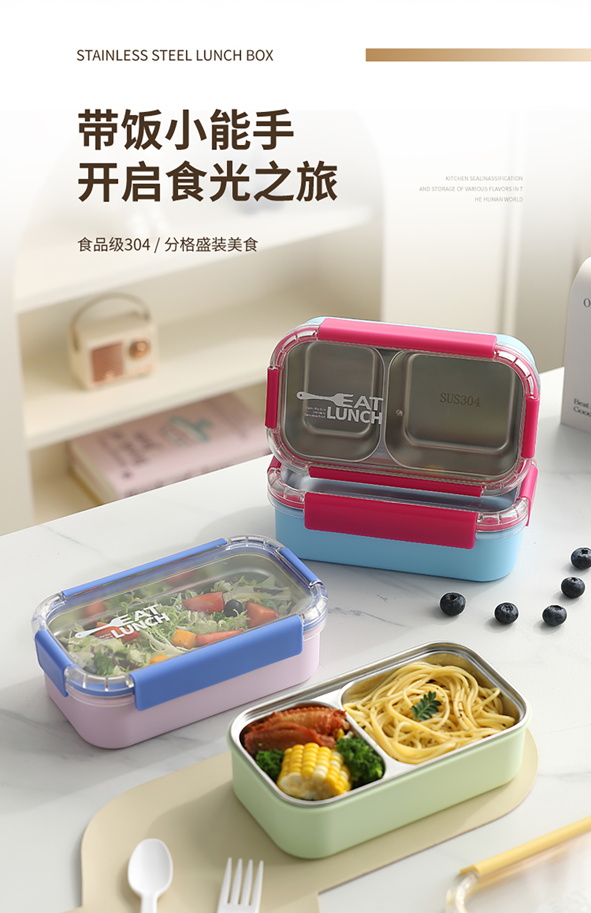 Size: 一格:203*118*65mm/600ml 二格:203*118*65mm/500ml