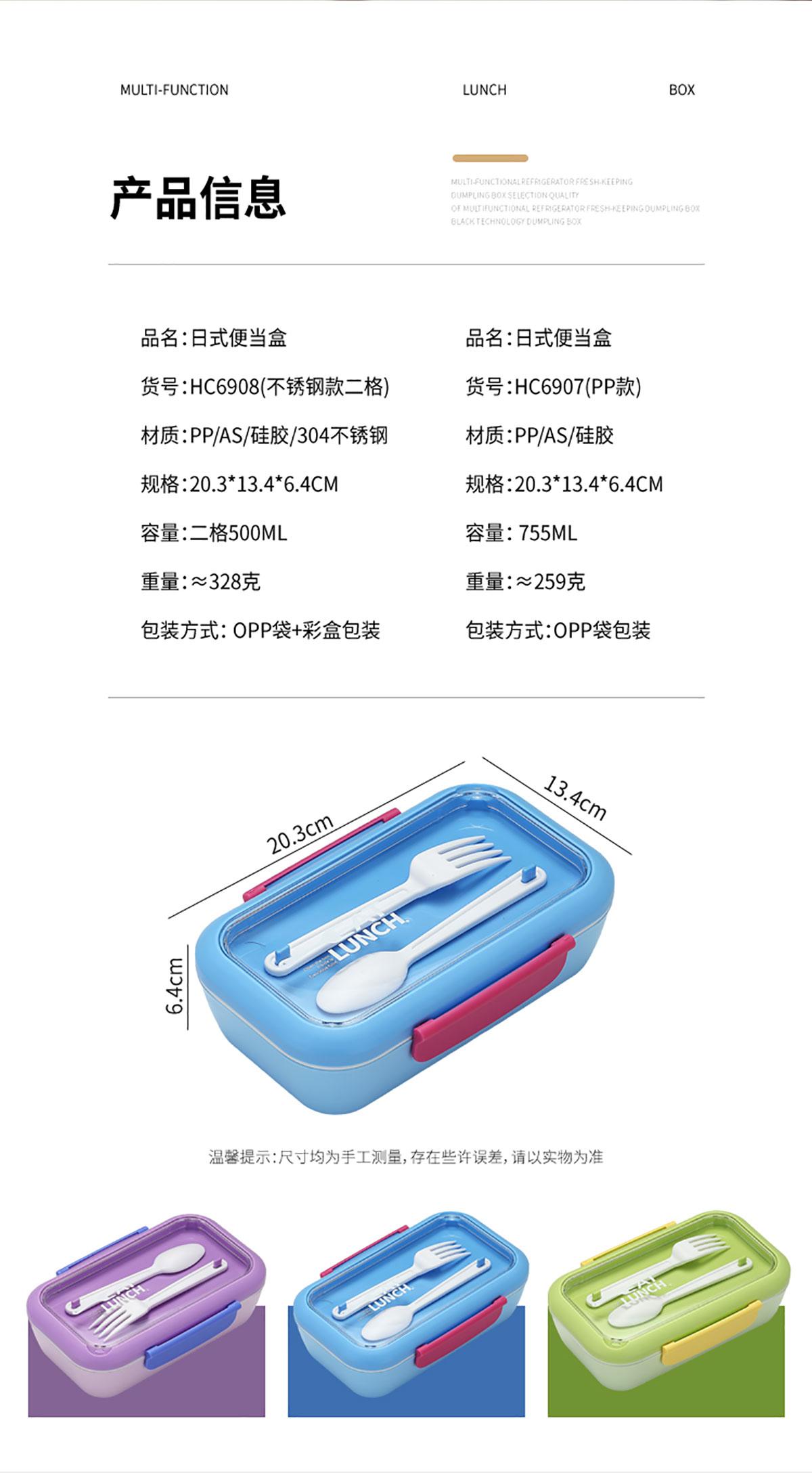 SWY-HC6907(PP款二格):203*134*64mm/755ml